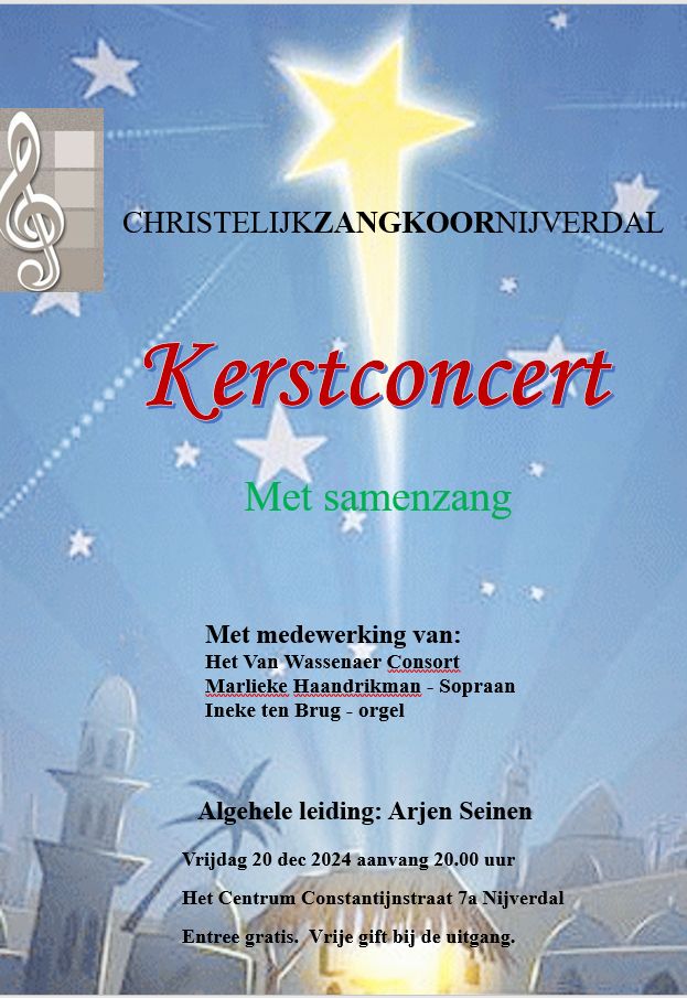 KERSTCONCERT MET SAMENZANG OP 20 DECEMBER Het Christelijk Zangkoor Nijverdal nodigt iedereen van harte uit voor het Kerstconcert op vrijdagavond 20 december in het Centrum, Constantijnstraat 7a, Nijverdal. Het…
